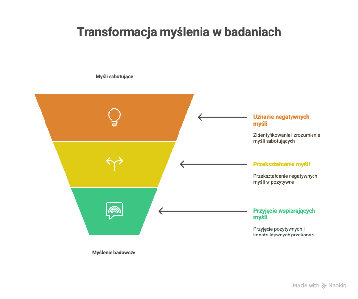 | Myśl sabotująca (głos oszusta) | Myśl wspierająca (głos badacza) |
