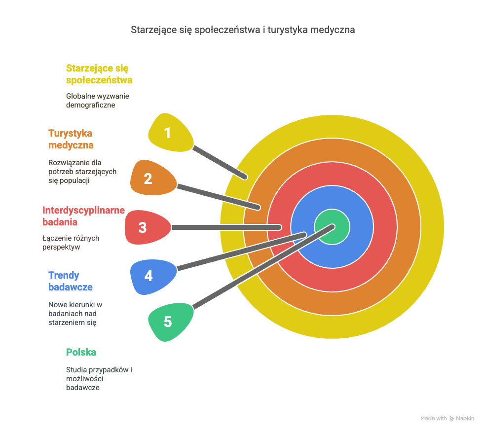 - Zdefiniuj wyraźnie problem badawczy – np. niedopasowanie polityk zdrowotnych do potrzeb starzejących się turystów.
