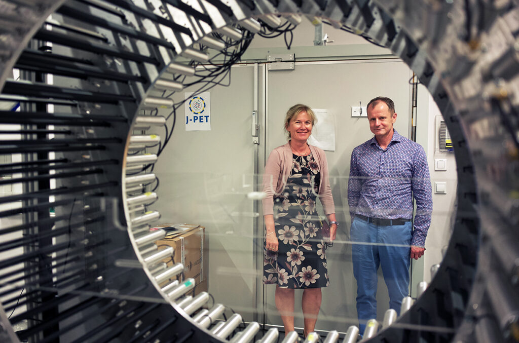 Co najważniejsze, czas życia pozytonium nie jest stały. Zależy on od mikrośrodowiska, w którym powstał – od wielkości pustych przestrzeni między cząsteczkami w tkance oraz od obecności reaktywnych molekuł, takich jak tlen. Gdy tkanka staje się nowotworowa, jej struktura ulega zmianie: przestrzenie międzykomórkowe mogą się zmniejszać, a poziom tlenu spadać. Profesor Moskal i fizyk medyczna dr hab. Ewa Stępień postawili hipotezę, że te zmiany muszą wpływać na czas życia pozytonium.